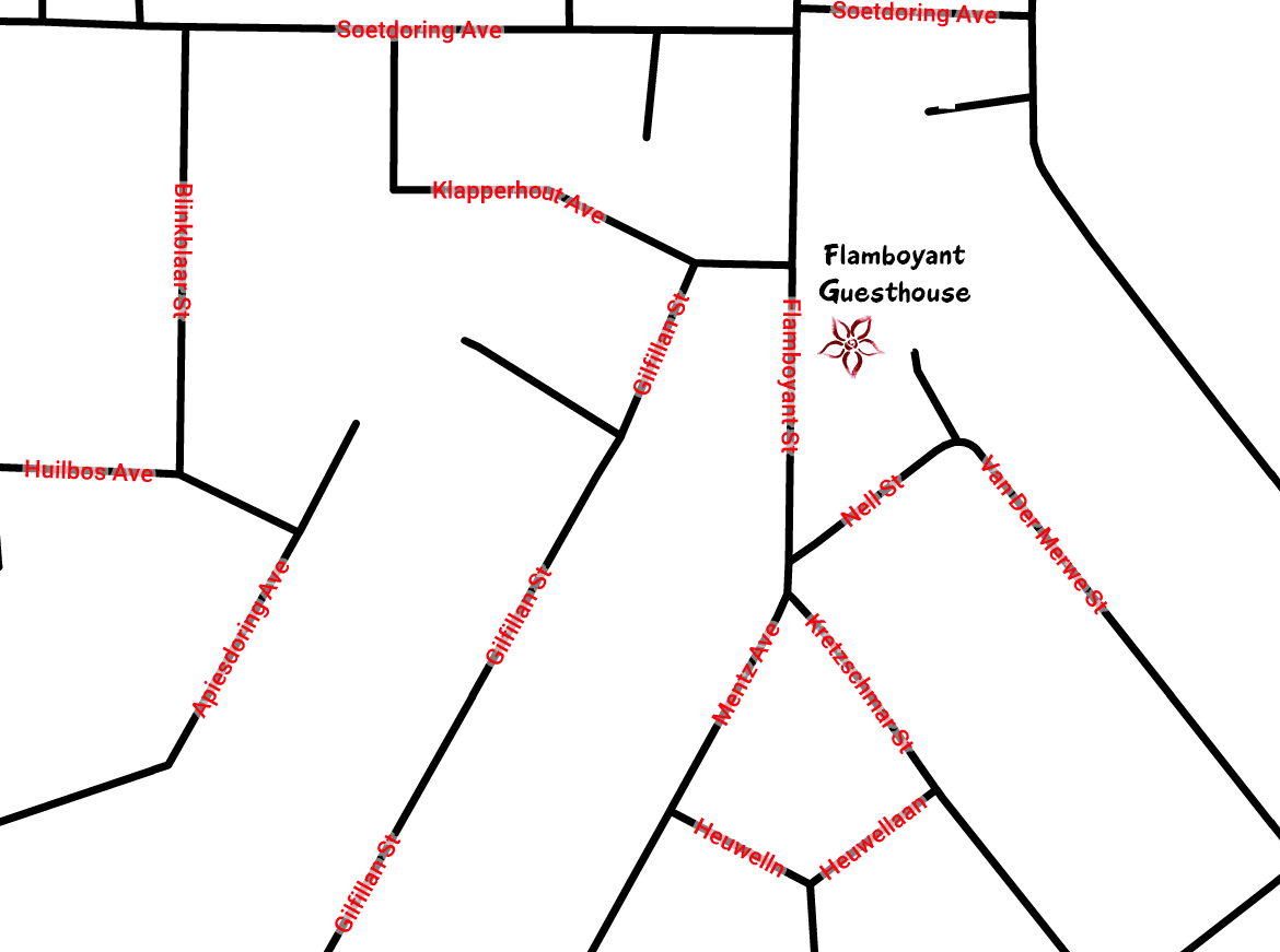 David Schabort +27 76 259 7111 (Office) +27 79 147 6147 (David) info@flamboyantguesthouse.com 5 Flamboyant Street, Bela-Bela, Limpopo